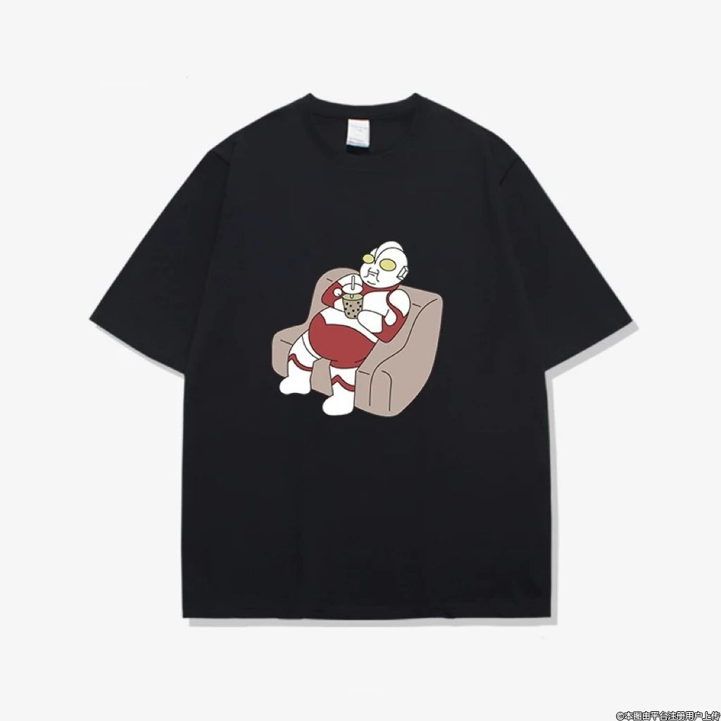 这款 T 恤的独特魅力首先体现在它极具创意的图案设计上。画面中,我们熟悉的奥特曼不再是英勇战斗的形象,而是躺在沙发上摆烂。这一颠覆传统的画面令人忍俊不禁,仿佛在告诉我们,即使是超级英雄也有想要放松休息的时候。这种有趣的反差萌,为 T 恤增添了一份诙谐和轻松的氛围。