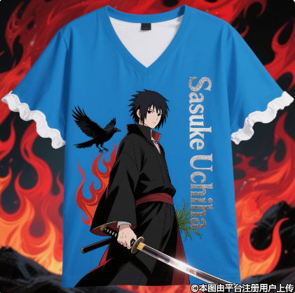 “这次设计的火影主题短袖,我想让每个细节都藏着忍者的浪漫。前胸用撕裂效果呈现鸣人的螺旋丸,橙色漩涡与黑色裂纹交织,仿佛随时会突破布料——特意在衣摆缝了句「だってばよ!」的刺绣,就像鸣人总在身后喊出信念