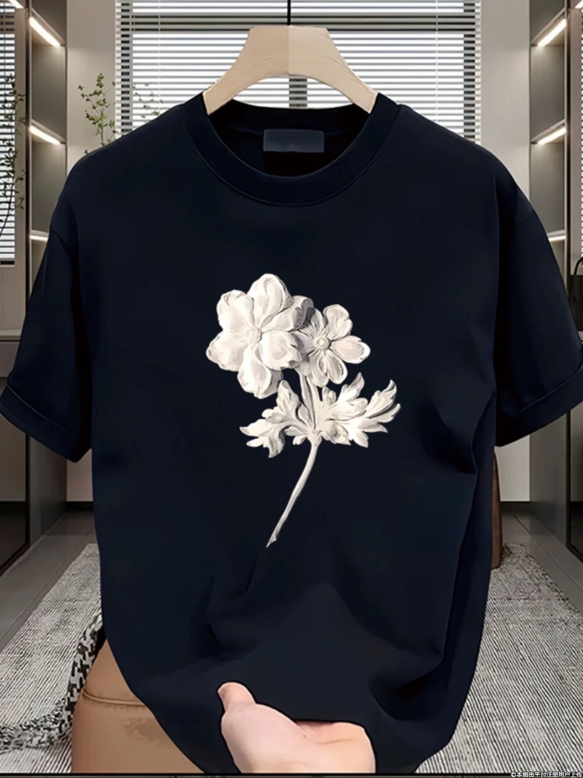 在时尚的浪潮中,一款独具魅力的重磅纯棉男士白玫瑰印花百搭短袖 T 恤惊艳亮相,为男士们带来全新的潮流体验。